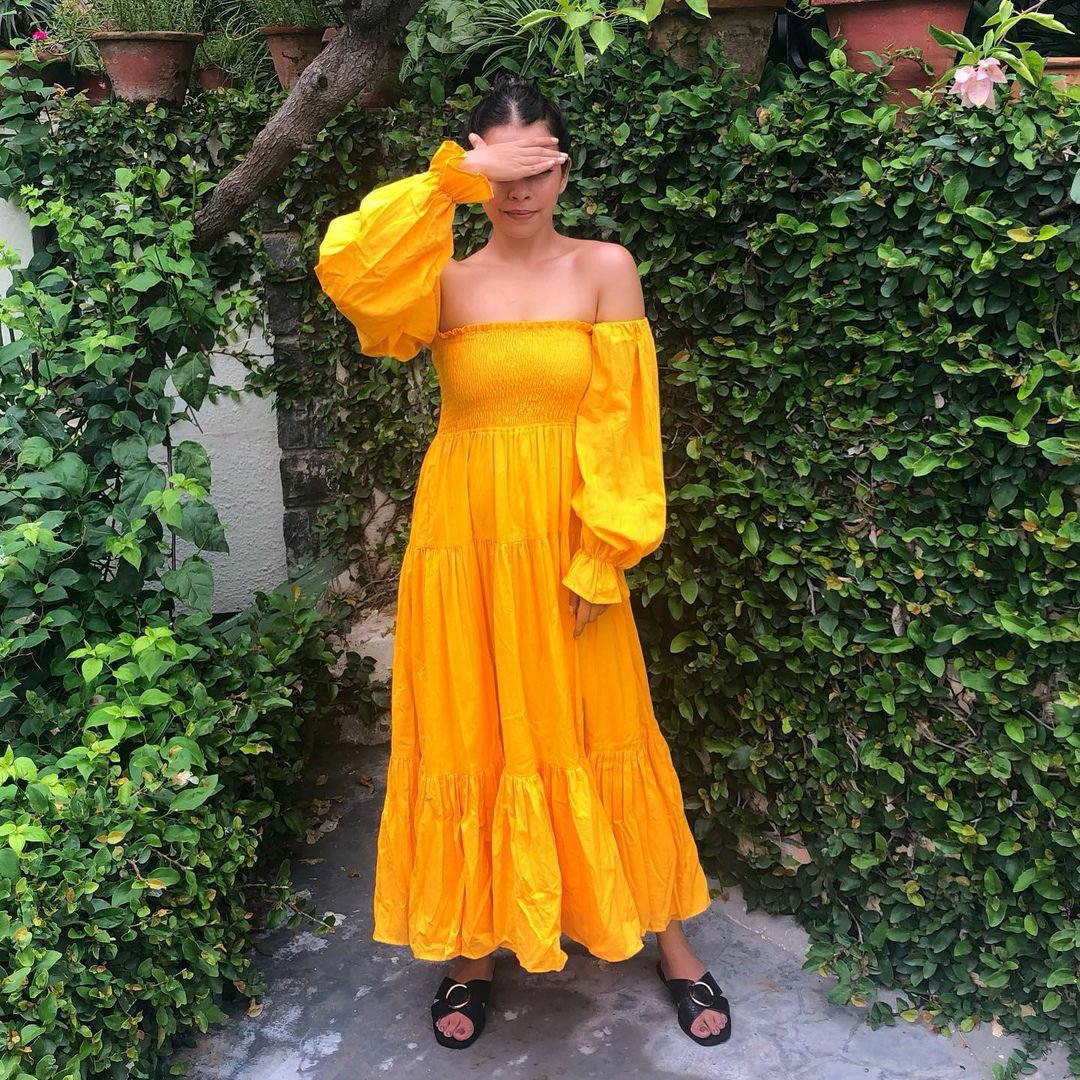 We’re absolutely gushing over their Marigold off-shoulder dress.