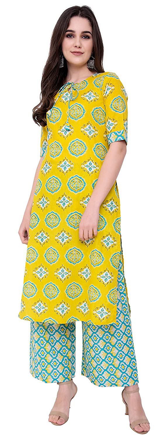 Want to look a bit decked up for a change? The easiest way to revamp your style and bring in a surprise element in your look is to get yourself into comfortable kurta and palazzo pants. This kurti set is a perfect example of comfort and style. It’s made up of pure cotton that is again a very comfortable fabric that will not at all irritate your skin.