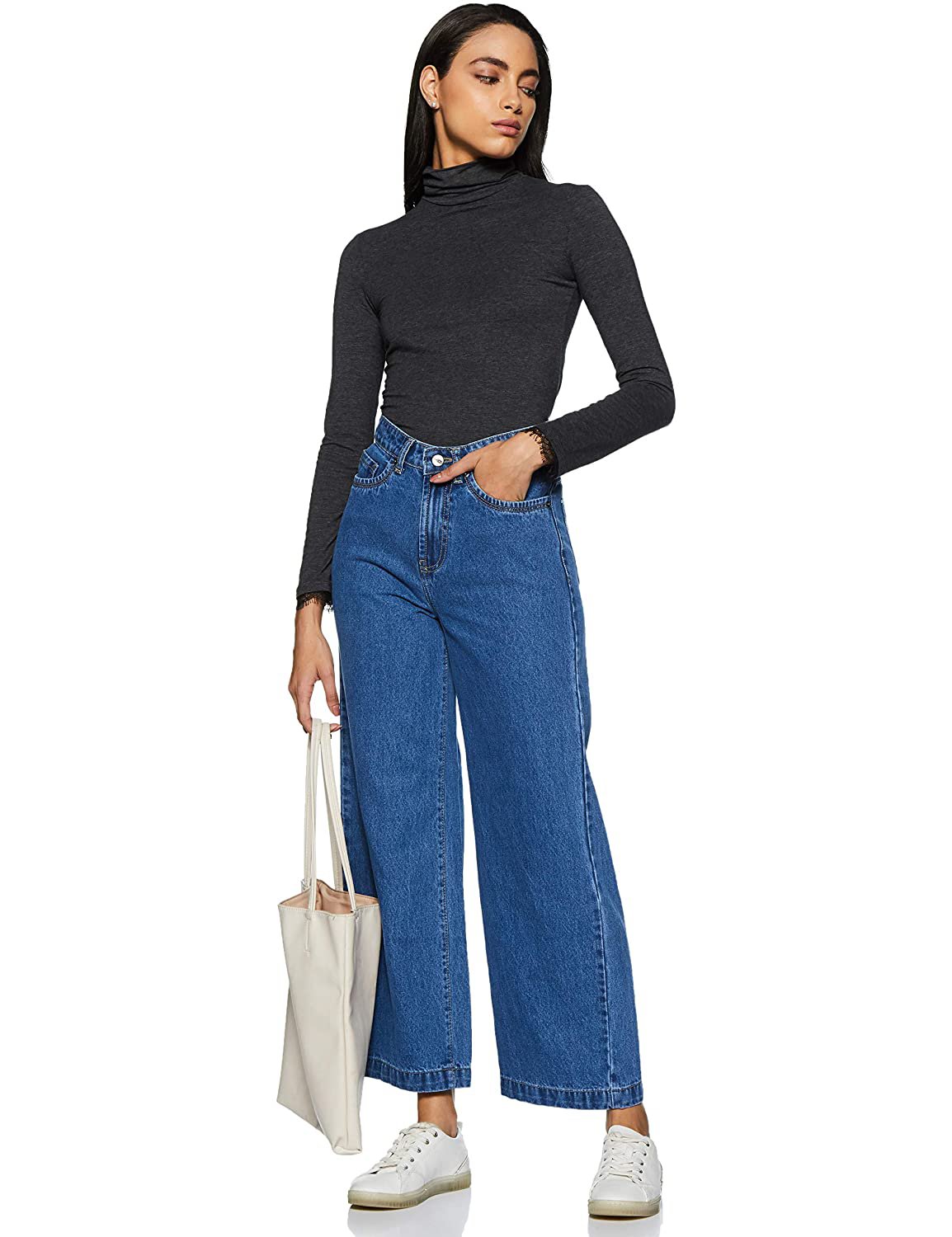 Want to level up your work-from-home outfit? Pair a basic cotton top with these wide-legged jeans and you are sorted! These relaxed-fit jeans will not make you uncomfortable even if you sit with your laptop the entire day. These are super breezy and are perfect for a basic yet chic look.