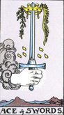 The Ace of Swords often represents the birth of an intellectual energy, idea, plan, vision, communiaton. Its presence suggests clarity of thought and mental prowess. You may be planning a new project or venture which is occupying your mind at present. Focussed attention is necessary if you want to succeed. You must be clear of your intention from the start and form a clear workable plan. The Ace of Swords also represents a new attitude replacing an old one. A fresh way of looking at things can bring clarity to the situation.