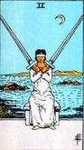 Two of Swords symbolizes making peace with the feeling of being in-between - in between life stages, in between jobs, in between relationships, in between projects, in between moving situation, in between friendship, in between big plans, etc. The card advises you to find your center in the midst of the transformation swirling around you. The truth is we are always in the state of in-between somewhere in our lives. The two of Swords illuminates that the place in your life that feels unresolved is precisely where life's greatest magic happens.