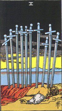 Ten of Swords tells us that you need to head out for a mini-vacay to rejuvenate your body, mind, and soul. Your body is demanding some sort of extra care such as a good massage or spa. Get out everything off your head that makes you feel overwhelmed and jot it down on a piece of paper. Life is a game and it is not to be taken as stress at all - repeat this mantra in your head when you feel low or are having a troublesome time and see how it will do you wonders. Remember to breathe and exhale out all your tensions and stress.