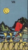 The card eight of cups says, it is time to face facts and realise that something you wanted to work out is not really working out at all. It is okay. It happens to all of us. The sooner you accept that it is not working, the sooner you can transfer your talent and energy into something that will work. Eight of cups is telling you that you should look elsewhere for success. Bigger and better is prizes wait for you.