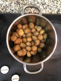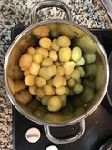 Boil your potatoes in salt and turmeric, let them cool down and peel them.