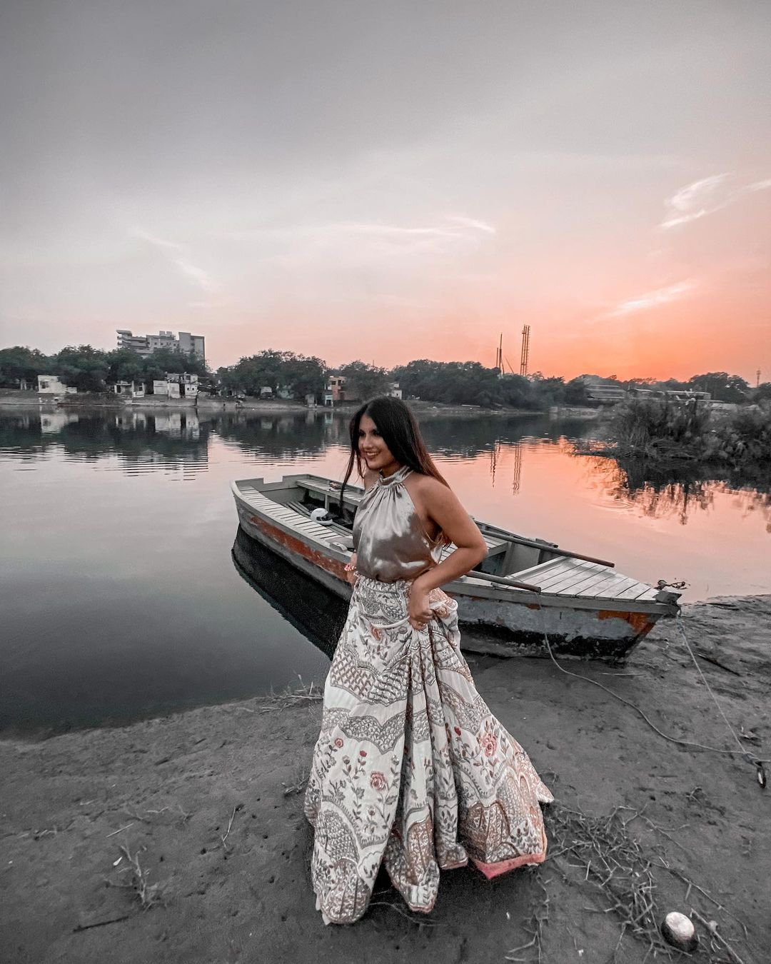 Komal is a powerhouse when it comes to creating content around fashion. She has inspired millions of people with her amazing styling videos. She is seen here wearing her lehenga as a dress. Yes, you heard us right. She has worn her low waisted lehenga as a dress and styled the look with a subtle dupatta and silver jewellery. Ingenious isn’t it?!