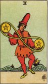 Two of Pentacles represents juggling unexpected events, these experiences aren't good or bad. They're nearly uncorrectable. The infinity symbol binding the two coins represents the eternal truth that life doesn't always go according to plan. The Juggler on the card survives the undulations of fortune because it remains flexible and adaptable. So how do you respond when things don't go according to plan, do you get angry and petrified or are you able to retain your good humor.