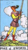 Page of Swords represents unnecessary defensiveness. These defenses guard a wounded area of the heart that needs healing. The Page of Swords guards himself from the feedback others give which stunts his development. He often pretends that he is fine and that it is everyone else who has the issue. If the Page of Swords could lower his unneeded defenses he would experience a huge breakthrough. His openness will get him past the blockages he keeps experiencing. He would then ascend to the next level.