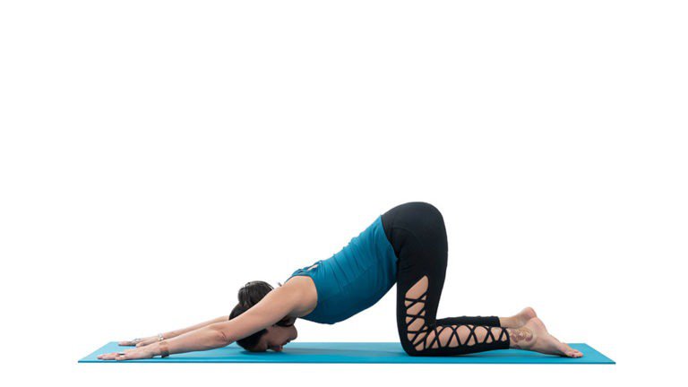 सर्व चौकारांवर येऊन प्रारंभ करा. तुमचे हात तुमच्या समोर सरळ करा आणि अशा प्रकारे मागे बसा की तुमचे ग्लूट्स (नितंब) तुमच्या टाचांवर टिकून राहतील. सर्व चौकारांवर येऊन सुरुवात करा. अशा प्रकारे मागे बसा की तुमचे ग्लूट्स (नितंब) तुमच्या टाचांवर विश्रांती घेतात. आता पुढे वाकून आपले हात जमिनीवर पसरवा. आपल्या टाचांवरून आपले ग्लूट्स न उचलता शक्य तितक्या हातांनी स्वत: ला पुढे खेचा.